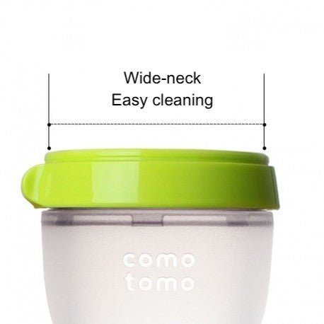 Czyszczenie butelek z wąską szyjką to bardzo uciążliwe zadanie, a po ich myciu czeka nas jeszcze, czyszczeniem i dezynfekcją szczotki lub myjki do butelek. Czasami jednak nawet myjka lub szczotka nie jest w stanie dokładnie wymyć wnętrza butelki, pozostawiając w środku resztki mleka. Dlatego antykolkowe butelki silikonowe MOM’S BREAST COMOTOMO mają bardzo szeroką szyjkę, dzięki czemu można je łatwo umyć ręcznie.