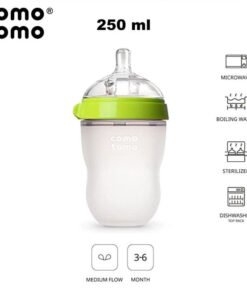 - 1 x kompletna antykolkowa butelka silikonowa MOM’S BREAST COMOTOMO 250 ml z antykolkowym smoczkiem MEDIUM FLOW [STAGE 2] odpowiednim od 3 m-ca życia