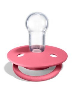 Silikon to materiał bardzo bezpieczny dla użytkowania przez niemowlęta. Jest jednak trwalszy i twardszy niż kauczuk z drzew Hevea. Jeśli dziecko z jakichkolwiek powodów nie akceptuje twardości silikonowych końcówek do ssania smoczków BIBS DE LUX, wybierz smoczki z kauczukową końcówką do ssania, np. BIBS kolekcja COLOUR.