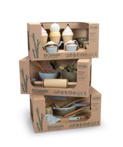 BIO zestaw do lodów jest produkowany w Danii z BIOplastiku wykonanego ztrzciny cukrowej, która w 100% jest zrównoważonym surowcem, dzięki czemu posiada certyfikat Nordic Swan Ecolabel. Zabawki te są przyjazne dla środowiska i nie zawierają szkodliwych chemikaliów. Nasze pudełka do zabawek zlinii BIO wykonane są z tektury z recyklingu.