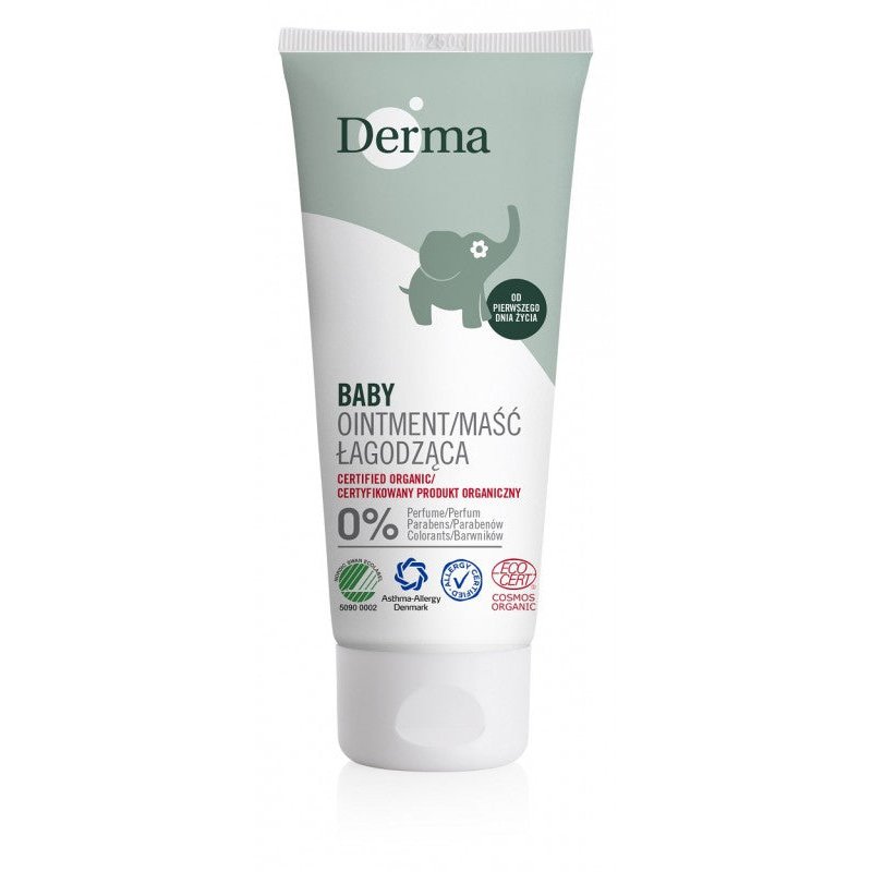 Derma Eco Baby Maść łagodząca – jest idealnym kosmetykiem ochronno- łagodzącym. To organiczny i hipoalergiczny kosmetyk opracowany z myślą o delikatnej skórze dzieci oraz niemowląt już od pierwszego dnia życia. Zawarty w nim wyciąg z aloesu łagodzi i koi zaistniałe już podrażnienia, odparzenia skóry, a jednocześnie ją nawilża i przywraca jej naturalne pH. Natomiast olejek rycynowy i olejek z pestek moreli zmiękczają naskórek, odżywiają i wygładzają. Dodatkowo zawarty w maści naturalny olejek kokosowy natłuszcza i nawilża delikatną skórę dziecka. Kolejnym dobrodziejstwem jest masło Shea, które działa regenerująco i intensywnie odżywia skórę pozostawiając ją miękką i delikatną. Dzięki mączce kukurydzianej maść ma dodatkowo właściwości ochronne. Mączka chroni skórę od wilgoci, a jednocześnie pozwala jej swobodnie oddychać. Dlatego jest idealna do stosowania w okolice około pieluszkowe, zapobiega bowiem podrażnieniom, odparzeniom i odpieluszkowemu zapaleniu skóry. Skóra po zastosowaniu produktu jest zabezpieczona przed działaniem niekorzystnych czynników.