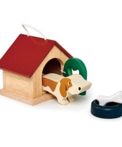 Drewniana budka z otwieranymi drzwiczkami, miska z kostką i drewniana figurka psa – ten zestaw na pewno ucieszy małych miłośników zwierząt. Zabawka będzie wspaniałym dodatkiem do domków dla lalek lub jako osobna zabawka do zabawy!