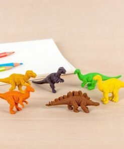 Dzieci pokochają tak oryginalne gumki. Ten zestaw zawiera sześć różnego rodzaju dinozaurów, w tym każdy w innym kolorze.