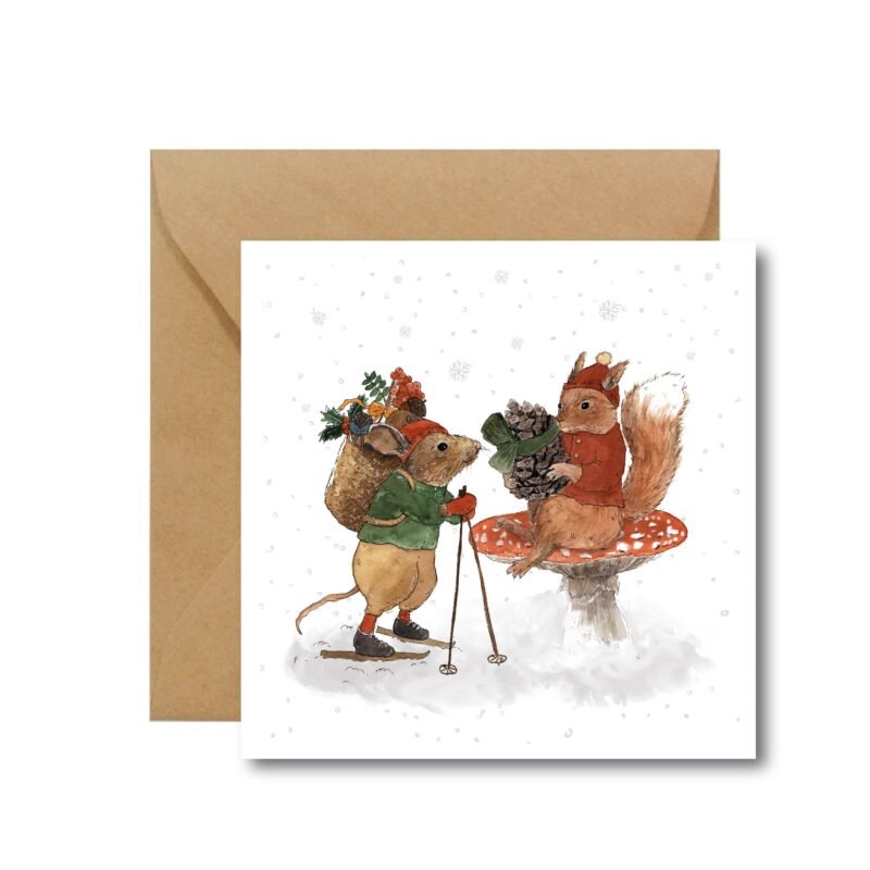 Kartka rozkładana z kopertą. Ręcznie rysowana, a następnie wydrukowana na ekologicznym papierze z małymi drobinkami, który sprawia wrażenie jakby to był oryginał nie wydruk. W środku gładka. Czeka na słowa skierowane do Waszych bliskich.