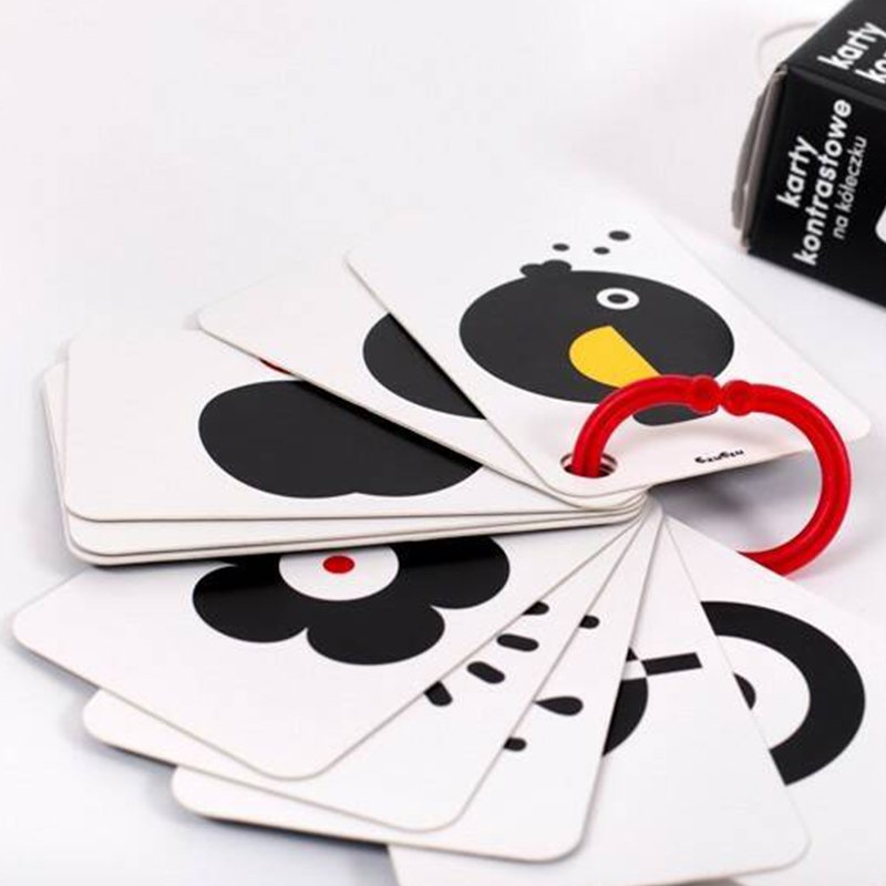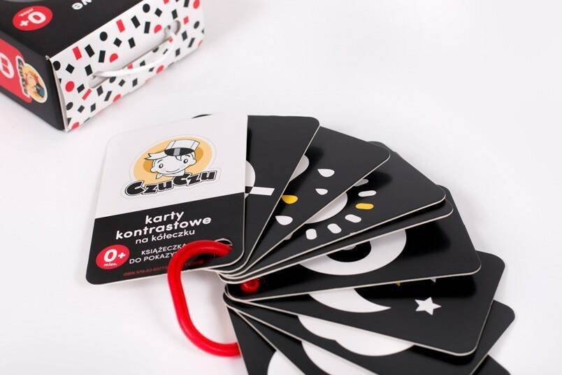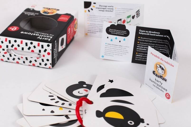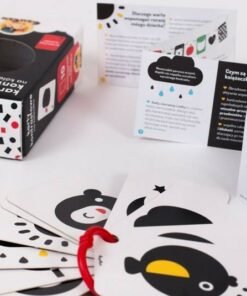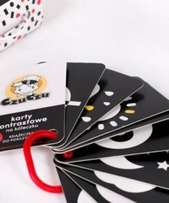 Edukacyjny zestaw zawiera książeczkę na kółeczku. Wyraźne kontrastowe wzory przyciągają wzrok i uwagę maluszka. Oglądajcie je razem. Opowiadaj o tym, co na nich widać, dzieci uwielbiają się przytulać i słuchać twojego głosu. To doskonały sposób na wspólne spędzanie czasu z maluszkiem i budowanie wyjątkowej więzi. Do zestawu dołączyliśmy poradnik pełen informacji o rozwoju wzroku niemowląt i pomysłów na zabawę.
