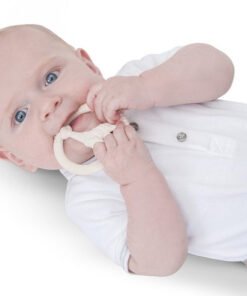 Gryzak w śmiesznym kształcie przypominającym znak pokoju lub emblemat mercedesa.Wykonany w 100% z lateksu – z żywicy drzewa gumowego. Naturalne tworzywo jest bezpieczne do żucia, lekkie i elastyczne, co chroni przed bolesnymi urazami podczas machania. Obłe kształty są łatwe do uchwycenia dla małej rączki, a różna tekstura (kropki i prążki) pozwala ukoić swędzące dziąsła w trakcie ząbkowania.