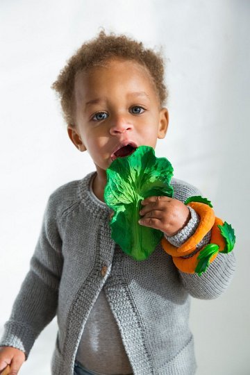 Naturalny kauczukowy gryzak dla niemowląt w kształcie warzywa, który pobudza zmysły dziecka, jednocześnie kojąc dziąsła w trakcie ząbkowania. Ukochany gryzak, zabawka do kąpieli i zabawka sensoryczna w jednym! W późniejszym etapie posłuży Twojemu dziecku do zabaw tematycznych (np. w sklep lub gotowanie). Będzie Wam towarzyszył przez lata na różnych etapach rozwoju dziecka.