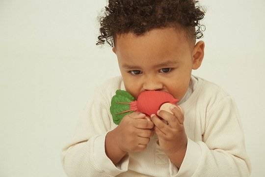 Aby wyczyścić zabawkę, wystarczy przetrzeć ją wodą z mydłem i wilgotną ściereczką. Nie sterylizować ani nie przechowywać w lodówce.