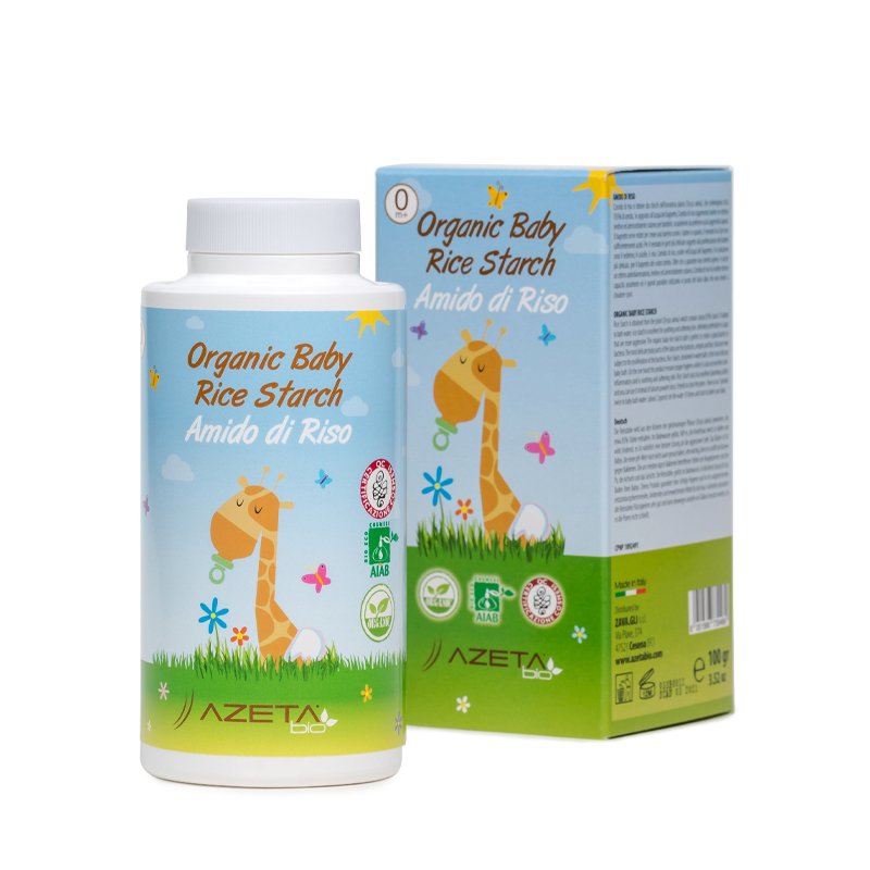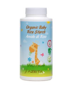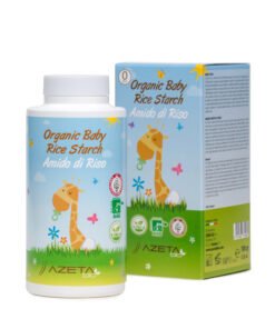 Organiczna skrobia ryżowa to naturalny emolient do kąpieli dla niemowląt i dzieci a także delikatna pielęgnacja pupy niemowlaka. Dodawana do wanienki z wodą doskonale odżywia i nawilża wrażliwą skórę. Łagodzi podrażnienia i zaczerwienia. Działa na skórę kojąco i zmiękczająco, tworząc jednocześnie skuteczną barierę przed bakteriami. Skrobia ryżowa Azeta Bio dodana do kąpieli jest skuteczną formą pielęgnacji delikatnej skóry dziecka i dlatego idealnie sprawdza się jako pierwsze kosmetyki dla noworodka. Posiada działanie przeciwzapalne, reguluje wytwarzanie sebum i zapobiega powstawaniu potówek u niemowląt. Używana jako puder do pupy, skutecznie chroni miejsca narażone na odpieluchowe odparzenia skóry. Naturalna zasypka dla niemowląt absorbuje wilgoć i pot pod pieluszką i nie zatyka porów dzięki czemu skóra swobodnie oddycha. Skrobia organiczna Azeta Bio zawiera 96% naturalnej skrobi, pozyskanej z rośliny Oryza sativa – ryżu siewnego.