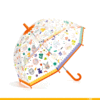 Przezroczysty plastikowy parasol od Djeco chroni przed deszczem i pozwala zobaczyć, dokąd zmierzasz.