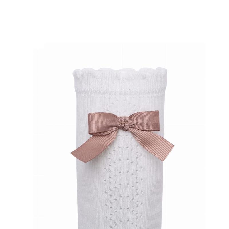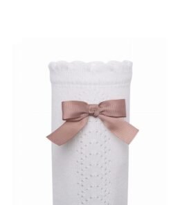 Natomiast ręcznie przez nas wiązana i doszywana kokardka jest przysłowiową „kropką nad i” – nie dość, że dodaje malutki akcent kolorystyczny, to również wpasowuje się w elegancki ton podkolanówek.