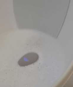 Termometr do kąpieli w wanience w kształcie kamyka włożony do wanienki unosi się na powierzchni i na bieżąco monitoruje temperaturę wody.