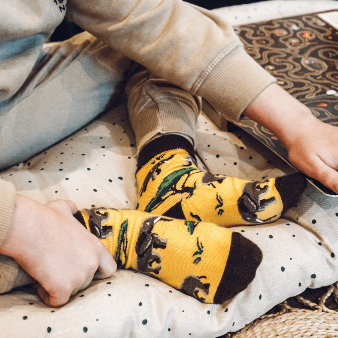 Czy wiesz, że… Kenijska flaga w kształcie prostokąta składa się z trzech pasów w kolorach: czarny, bordowy i zielony. Pasy te zostały przedzielone mniejszymi białymi paskami. W jej centralnej części znajduje się tarcza masajskich wojowników, a także skrzyżowane masajskie miecze. Kolor czarny to symbol mieszkańców Kenii, czerwień upamiętnia przelaną krew podczas powstania Mau-Mau, zaś zieleń odnosi się od piękna przyrody. Nasze skarpety z kenijskiej kolekcji to przede wszystkim podróż do krainy zwierząt, ale kto wie do jakich podróży Was zainspirują…zny jaszczur”? Ale nie bójcie się, nasza kolekcja kolorowych skarpet dla całej rodziny, choć pełna jest dinozaurów – powoduje jedynie uśmiech i gwarantuje dużo dobrej zabawy!