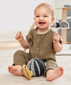 Zaprojektowana we współpracy z ekspertami w dziedzinie edukacji Montessori, zabawka do wózka 3w1 zachęca do stymulacji wzrokowej, rozwija zdolności motoryczne i wiele więcej w domu i w podróży. Zabawka jest dwuczęściowa z możliwością używania każdego elementu osobno lub złączone, zapewniając trzy różne sposoby zabawy. Miękka grzechotka ma z jednej strony kontrastowy wzór, a z drugiej jasne kolory. Drewniany pierścień wykonany jest z drewna pochodzącego ze zrównoważonych źródeł.