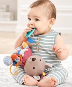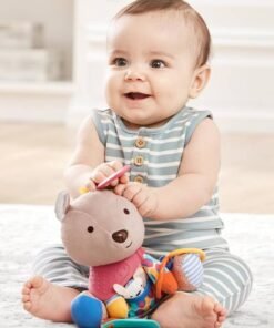 – posiada grzechoczące kółeczka, szeleszczenie, gryzak, małego przyjaciela w kieszonce i wiele innych