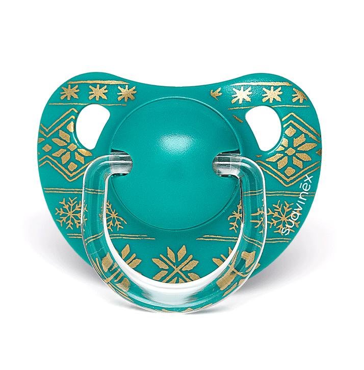 Smoczek premium z anatomicznym, silikonowym smoczkiem. Jego kształt naśladuje kształt sutka matki podczas karmienie piersią, idealnie dopasowując się do podniebienia dziecka.