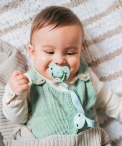 Ze względu na bezpieczeństwo dziecka zawsze dokładnie sprawdzaj produkt przed każdym użyciem. Pociągnij smoczek we wszystkich kierunkach. Odrzuć go przy pierwszych oznakach uszkodzenia lub osłabienia. Nigdy nie przyczepiaj innych wstążek ani sznurków do smoczka, ponieważ dziecko może zostać przez nie uduszone.