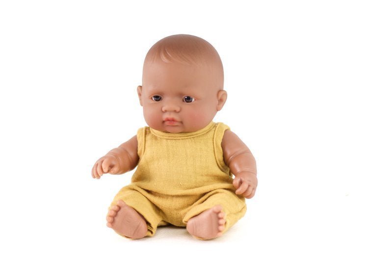 Ubranko zostało zaprojektowane i uszyte z myślą o laleczkach Miniland. Spodenki idealnie pasują na lalkę Miniland 21 cm.