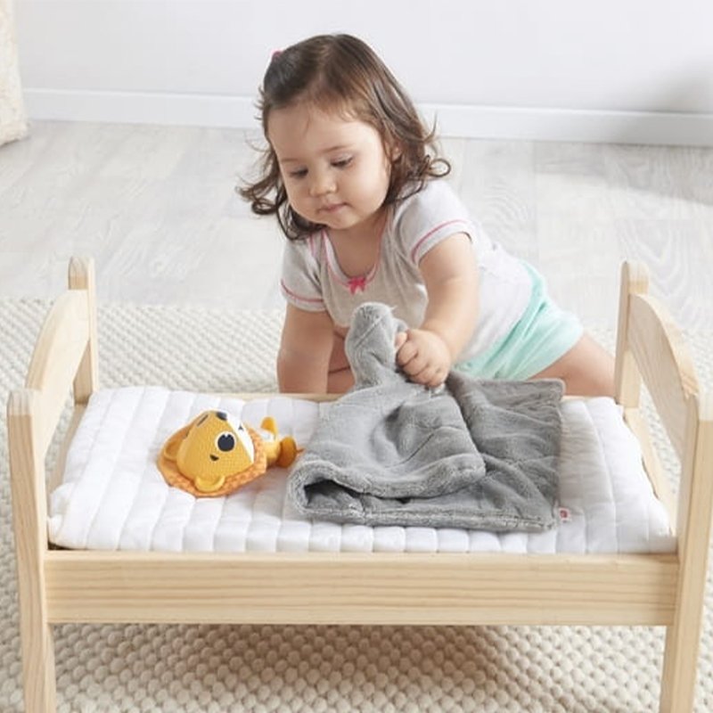 Dziecko uczy się w ten sposób m.in. cierpliwości, a także tego, jak opiekować się innymi (będzie nakrywało zabawkę kołderką, nuciło jej kołysankę, głaskało). Rodzic może wskazywać maluchowi, gdy nadchodzi czas drzemki czy spania. Z takim przyjacielem, dziecko z pewnością będzie bardziej skłonne do wykonania tej czynności.