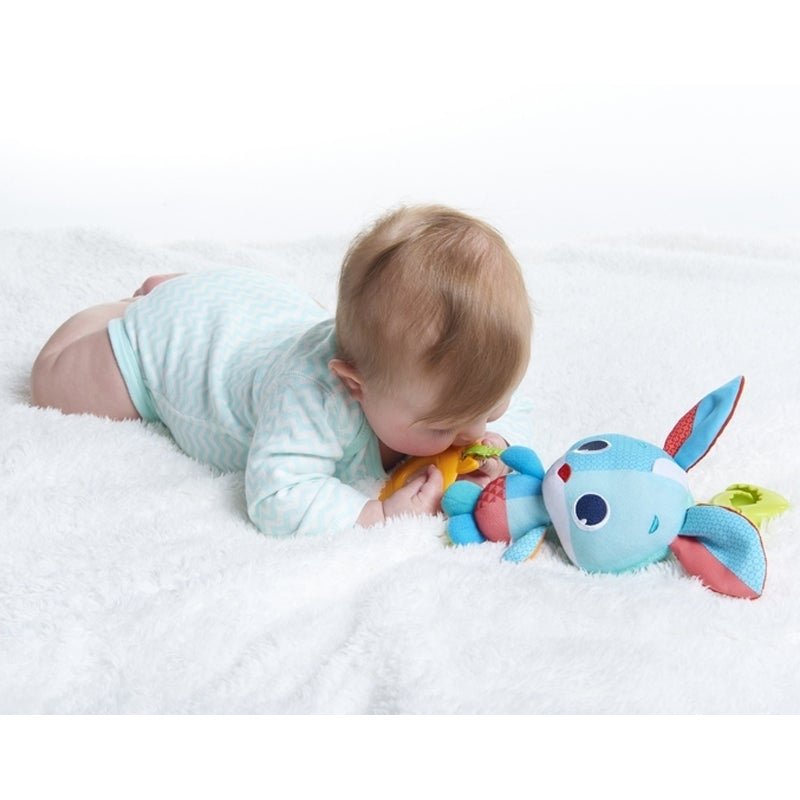 Zabawka ma wyraźnie zdefiniowane i pokazane emocje na twarzy, bogatą kolorystykę, dźwięki i tekstury, które stymulują zarówno zmysł wzroku i dotyku dziecka oraz wspomagają jego rozwój.