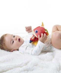 Zabawka ma wyraźnie zdefiniowane i pokazane emocje na twarzy, bogatą kolorystykę, dźwięki i tekstury, które stymulują zarówno zmysł wzroku i dotyku dziecka oraz wspomagają jego rozwój.